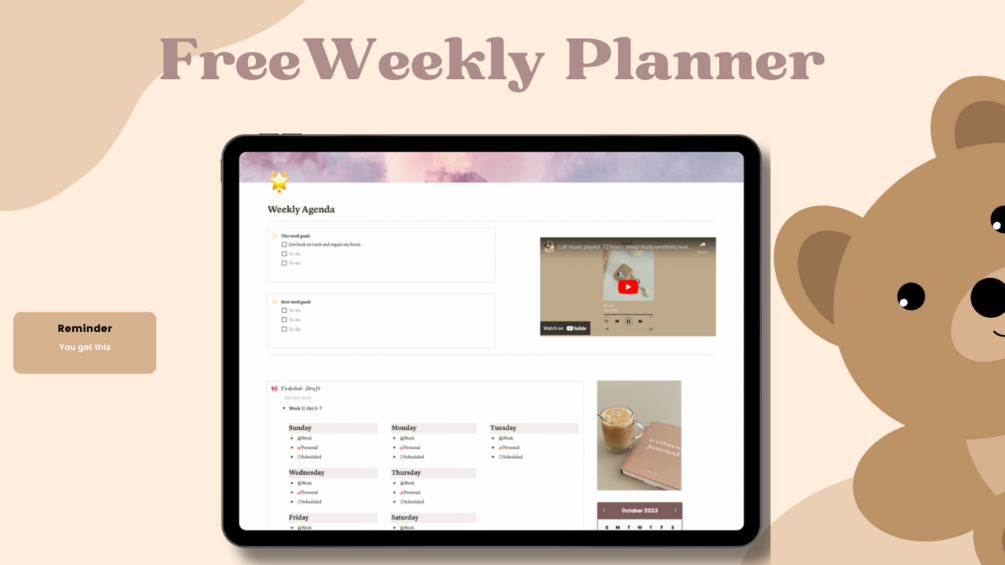 - 🎶 There's an embedded relaxing audio which you can listen to it while panning your week.